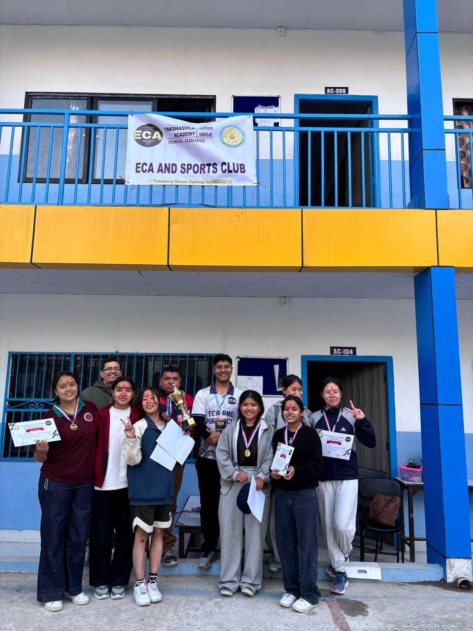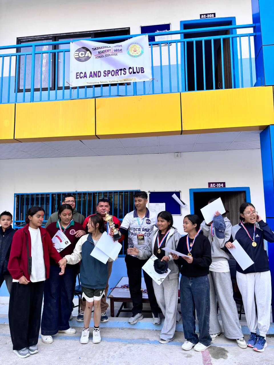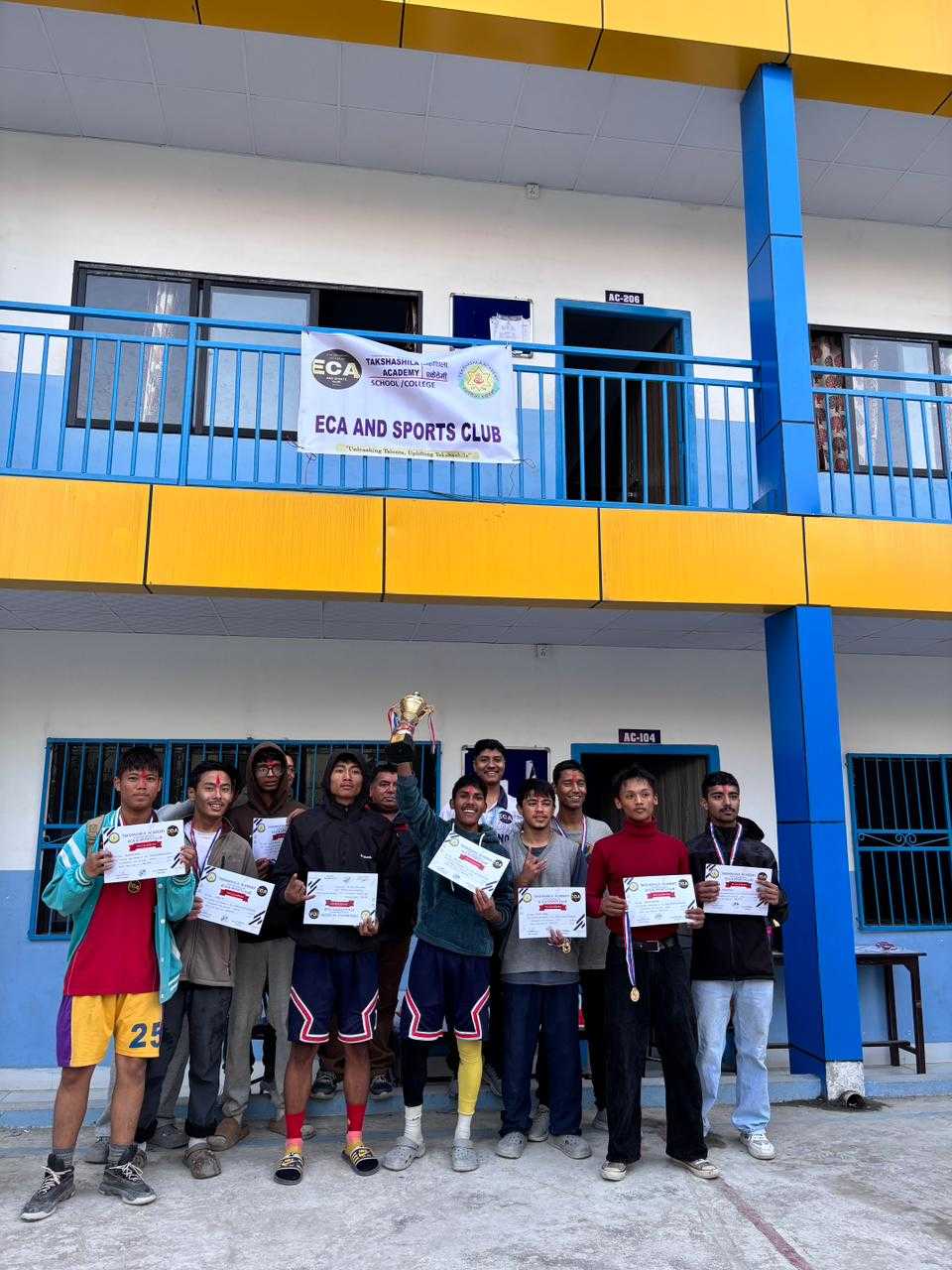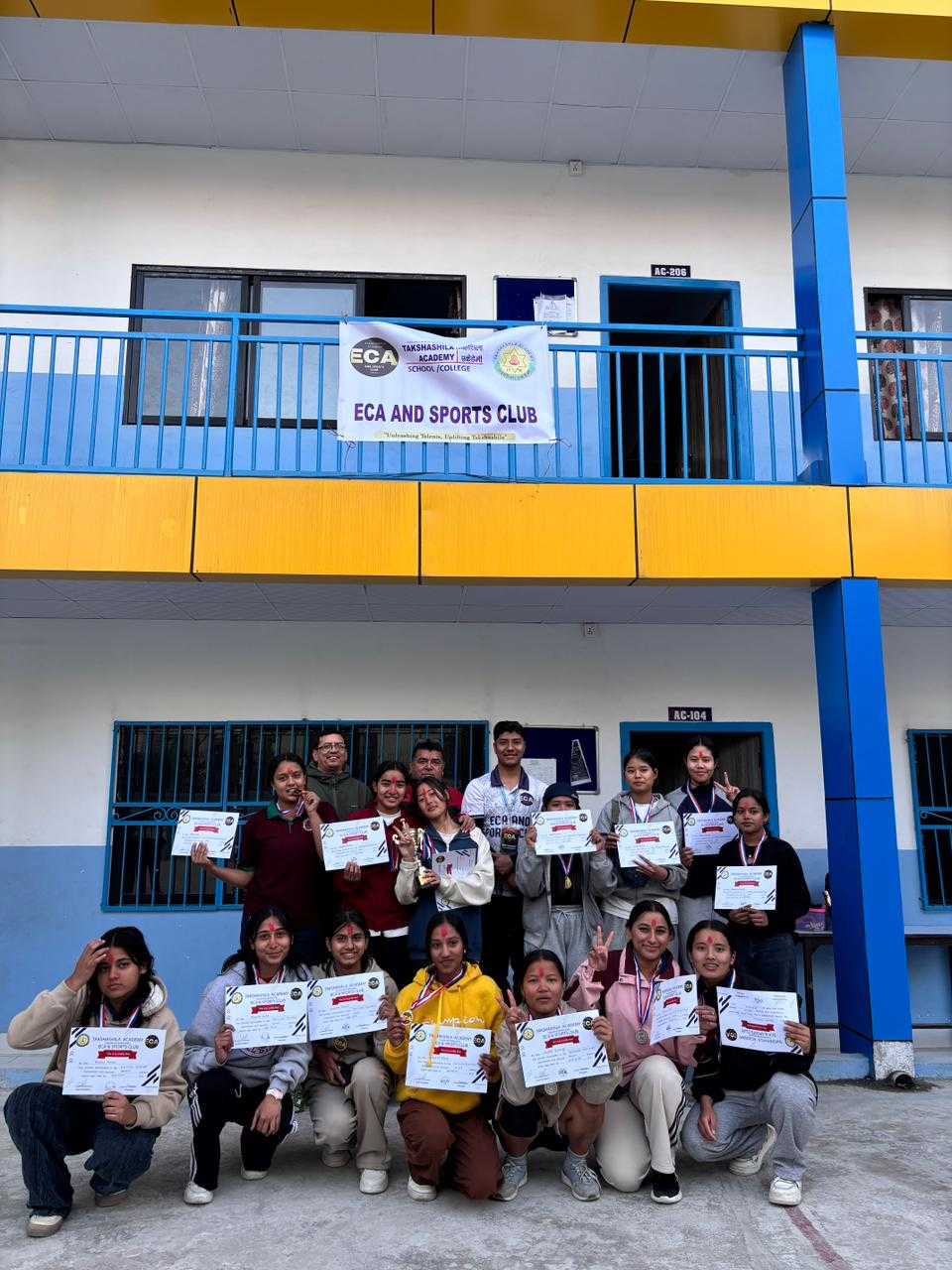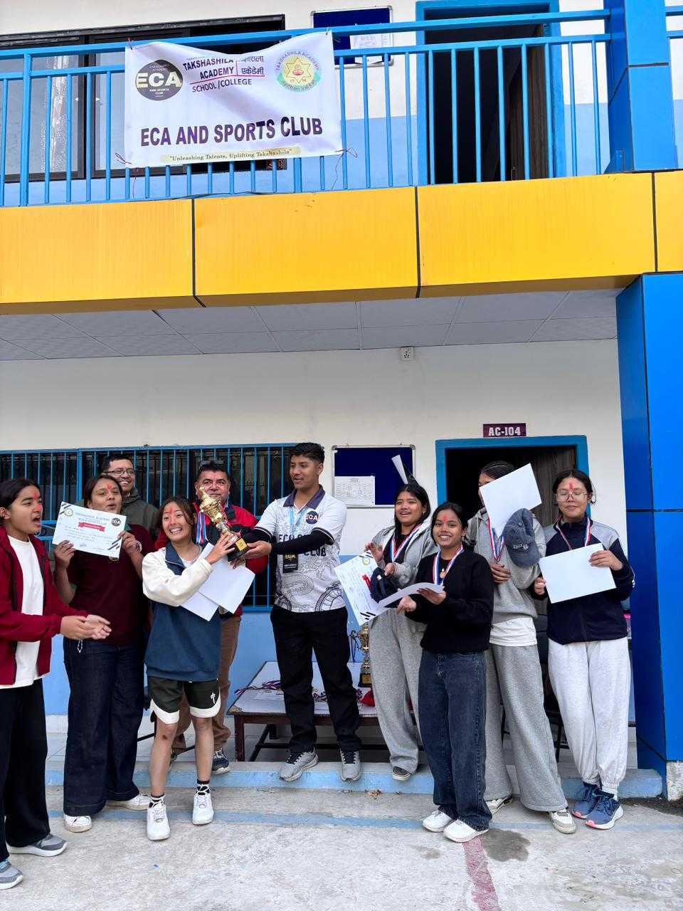 तक्षशिला एकेडेमी ECA तथा खेलकुद क्लब (TSA ECA and Sports Club) को आयोजनामा मिति २०८२ मङ्सिर ०६ गते कलेज अन्तर सेक्सन भलिबल प्रतियोगीता सम्पन्न भएको छ । कक्षा एघार र बाह्रका छात्र -छात्रा हरू प्रतियोगितामा हर्षोल्लासका साथ सहभागी भएका थिए ।
